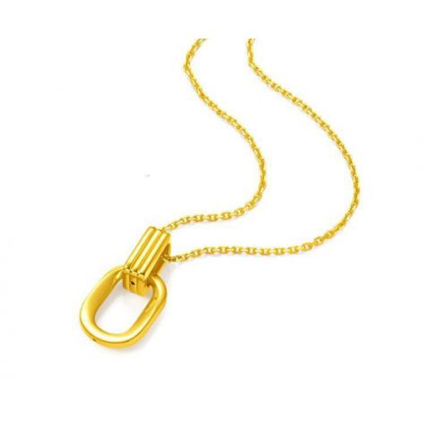 周大福金项链珠宝首饰简约大气几何双环足金金项链