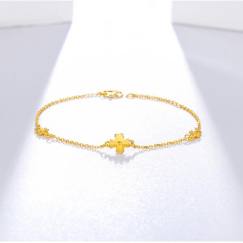 六福珠宝 足金十字相连黄金手链女士