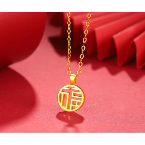 周大福 国潮万福圆牌 足金金吊坠
